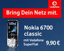 Vodafone Handytarife und Handys / SmartphonesVodafone bietet attraktive Handytarife zum mobilen Telefonieren, z.B. die Vodafone SuperFlat Tarife - eine Handy Flatrate ins deutsche Festnetz und optional auch in andere Handynetze sowie ins Internet. Ebenfalls neu ist das Vodafone 360 Angebot, mit dem Sie alle Ihre Kontakte, auch die der Social Networks kombinieren. Weitere Infos zu den Vodafone Tarifen folgen hier in Kürze. Bis dahin informieren Sie sich im Vodafone Handy Onlineshop. |